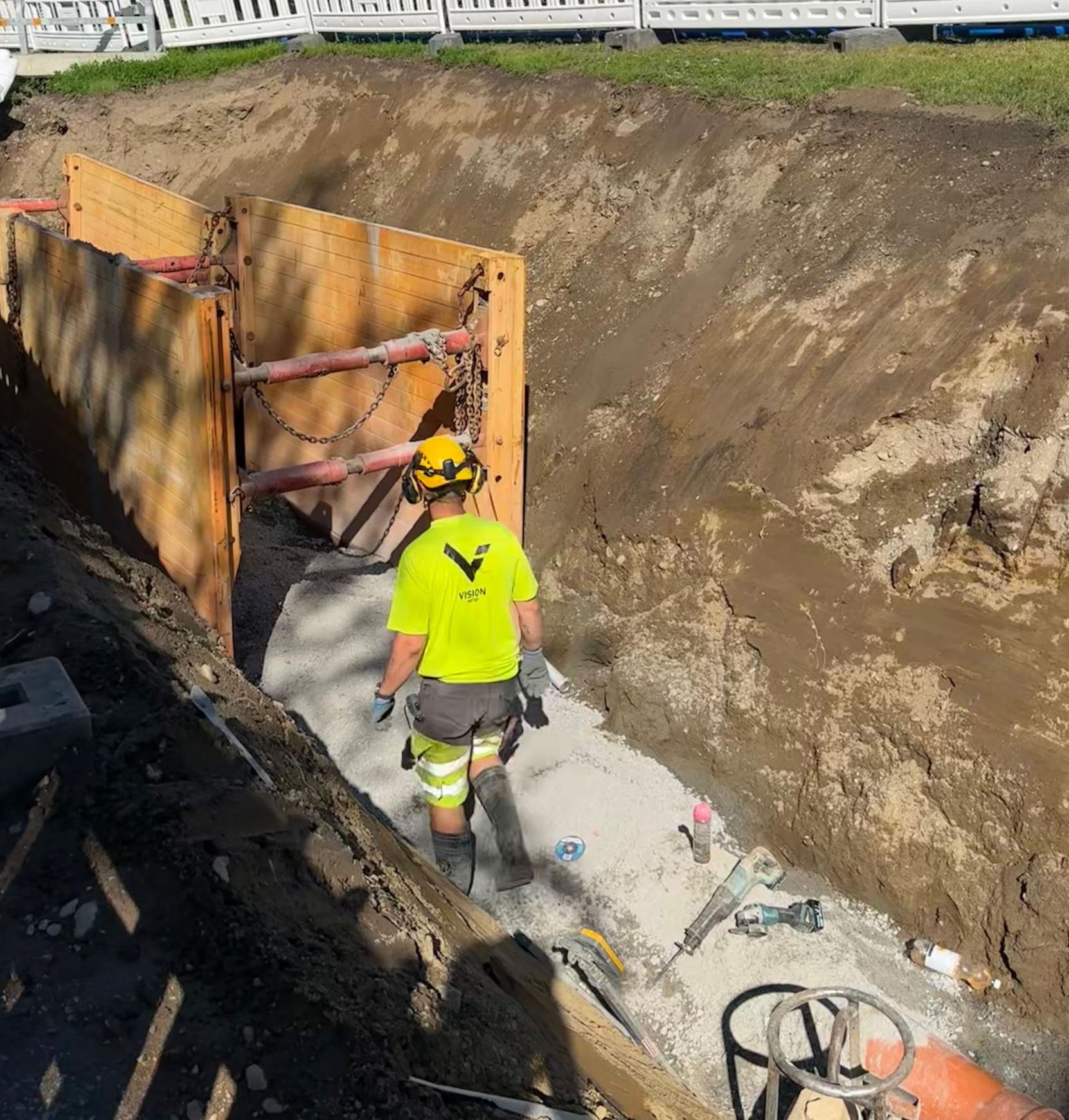 ”Teimme 2024–2025 SSAB:n Vanajan voimalaitoksen kaukolämmön siirtolinjan, johon kuului kaksi kilometriä kaivantoa ja neljä kilometriä putkea. Teimme myös pääradan alituksen suuntaporaamalla ja isoja tuentoja. Urakkakoko oli reilut kaksi miljoonaa euroa ja urakka valmistui kolme kuukautta etuajassa.”