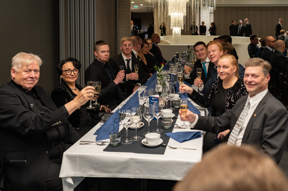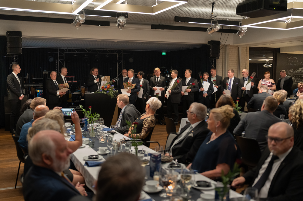Lauantain iltajuhlassa jaettiin ansiomerkkejä luottamushenkilöille. Paikalle olivat päässeet Per Fjäder, jolle ojennettiin Suomen Valkoisen Ruusun ritarimerkki (SVR R) sekä Jukka Tuominiemi ja Ville Routama, jotka saivat molemmat INFRAn levykkeet. Ville Routaman levyke oli myönnetty jo 2022. Hän sai lisäksi kultaisen ansiomerkin. INFRAn timanttisen merkin sai Kaj I. Hemming. Kultaisten merkkien saajista paikalla oli Routaman lisäksi Pertti Peltomaa. Hopeisten merkkien saajista paikalla olivat Markus Kanerva, Pirita Paavola, Janne Pitkänen, Mika Salo, Aki Hyötyläinen, Ilkka Kemppainen, Juha Mäkinen, Toni Kohtamäki ja Christoffer Tallqvist.